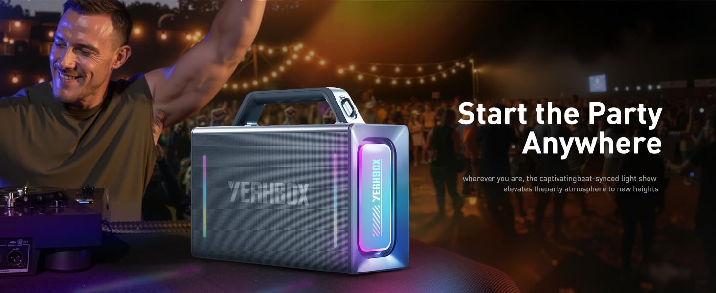 120W Max Portable Speaker Loud Wireless Bass Booster with RGB Lights, IPX6 Waterproof Outdoor Large Big Subwoofer, Dual DSP, Indoor/Outdoor for Camping, Party/24H/TF/AUX/EQ (Black)