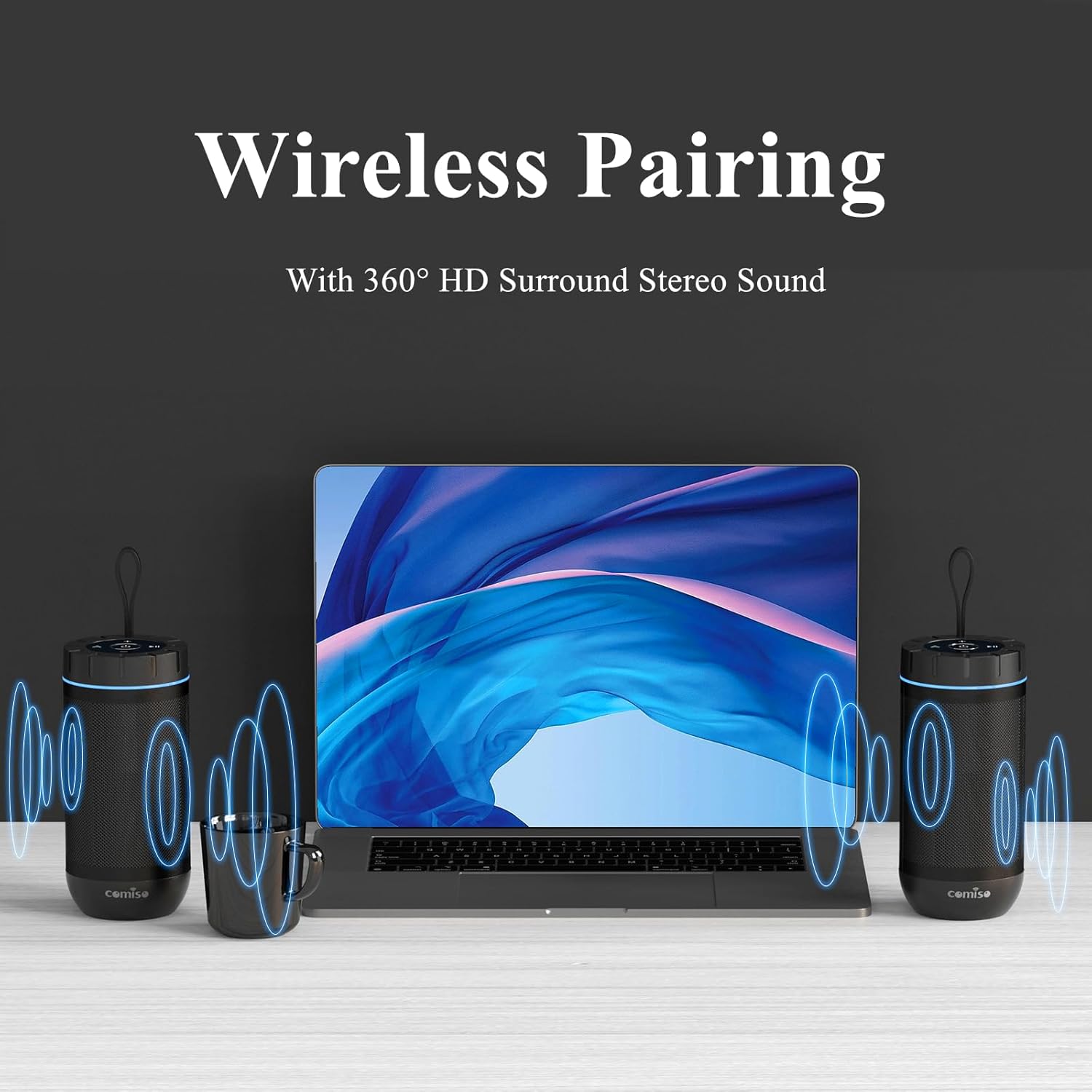 comiso Bluetooth Speaker, IP65 Waterproof Portable Speaker with 360° HD Stereo Sound, Punchy Bass, TWS Pairing, 24H Playtime, Wireless Speakers for Home/Outdoor/Camping/Beach, Gifts for Unisex