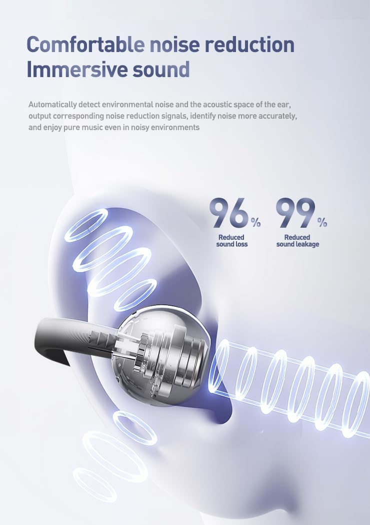 The open-ear clip-on design avoids pressure and fatigue caused by in-ear headphones. Lightweight and ergonomic — you’ll forget you’re even wearing it.